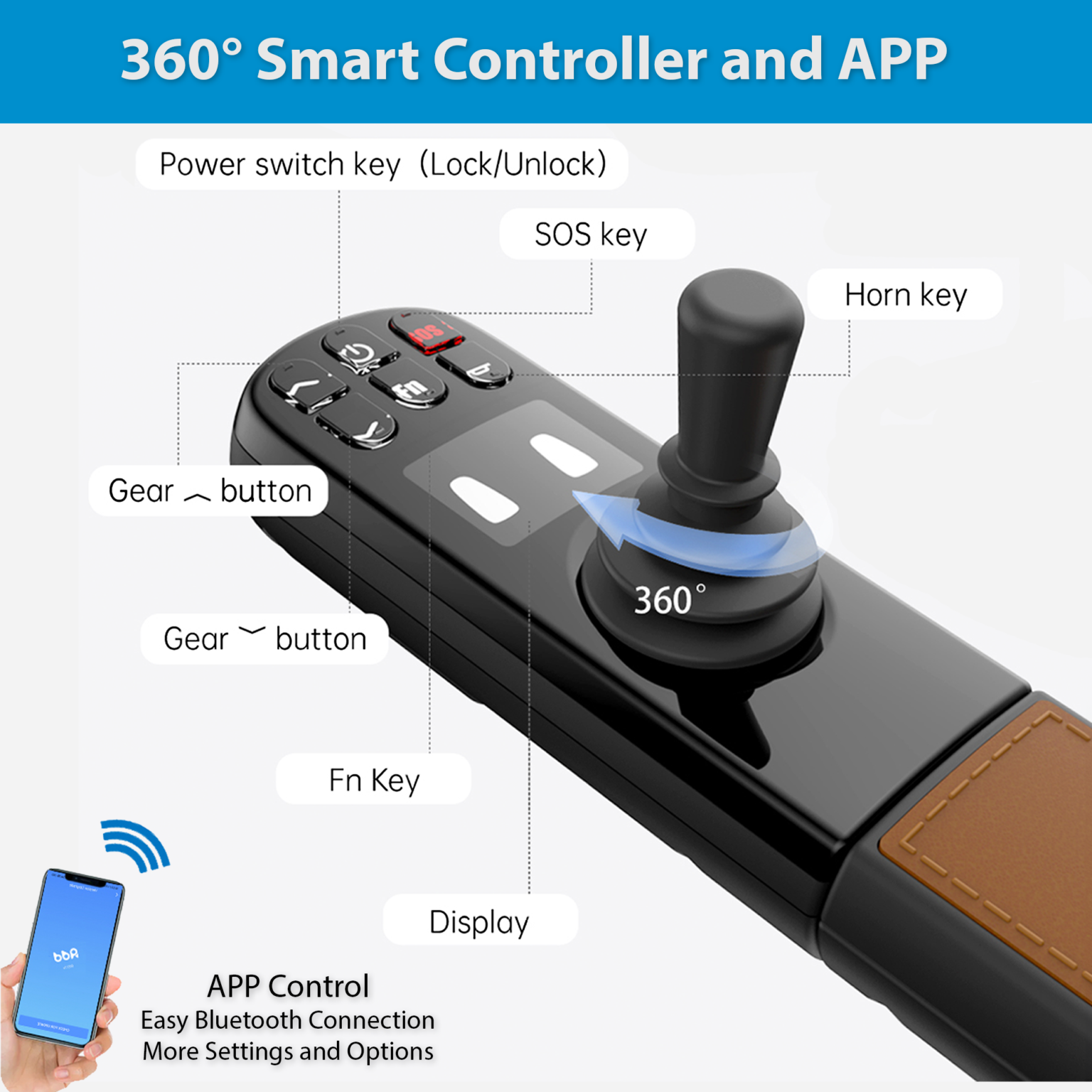 This smart electric powerchair features a powerful 20Ah lithium-ion battery for a generous 20km range on a 4-6 hour charge.